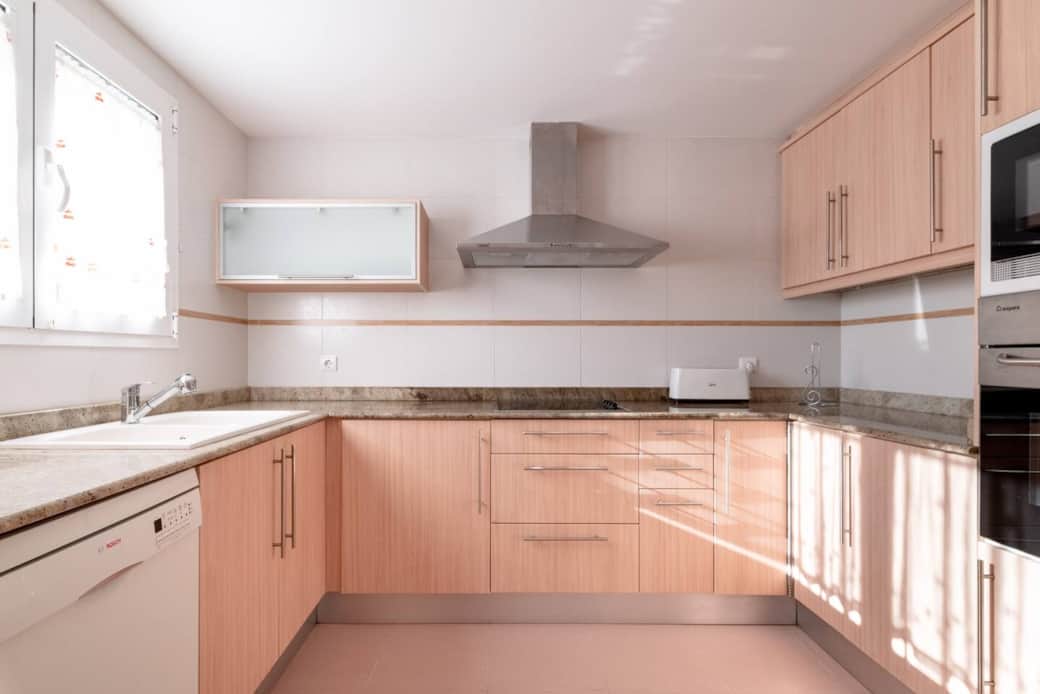 Trona para bebés, Máquina de café, Utensilios de cocina, Lavavajillas, Horno y placa, Cocina pequeña, Microondas, Horno, Frigorífico, Tostadora